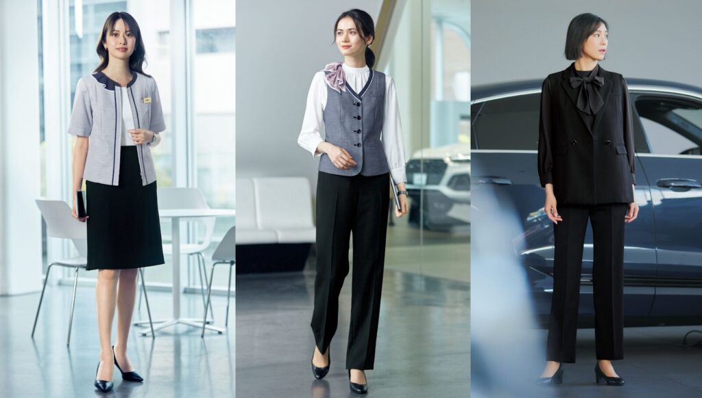 車という高額な商品を取り扱う場所だからこそ、制服はブランドの顔として、信頼や品格を伝える大切な役割を担っています。